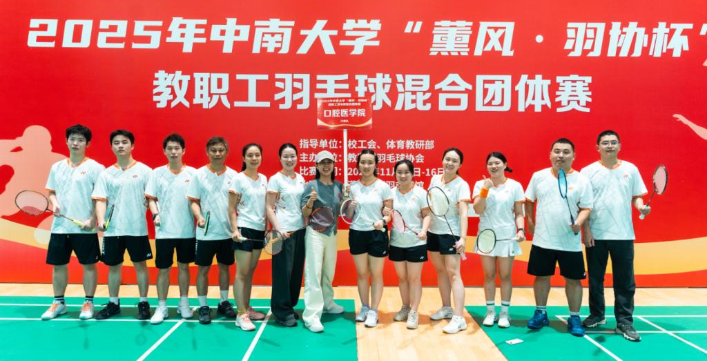 11月15日至16日,600全讯白菜官方网站“熏风·羽协杯”教职工羽毛球混合团体赛在潇湘校区羽毛球馆举行。我院积极参赛,派出由15位教职工组成的代表队出征赛场,虽在16进8的晋级赛中遗憾止步,但全程展现出的拼搏姿态与团队精神赢得了对手与现场观众的认可。