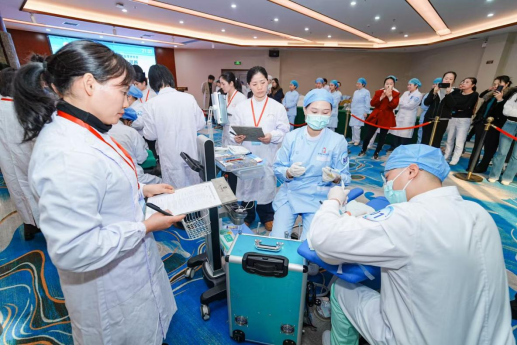 紧随其后的四手操作技能大赛将活动推向高潮。四手操作是现代口腔诊疗中提升效率、保障医疗安全、改善患者体验的重要护理配合模式。大赛旨在“以赛促学、以赛促练、以赛促用”,全面检验和展示口腔护理人员的协同配合、器械传递、感染防控及椅旁急救等综合能力。来自全省各医院的代表队同台竞技,比赛现场紧张有序,选手们精神饱满,操作流畅精准,充分展现了湖南省口腔护理人员扎实的专业功底、严谨的工作态度和良好的团队协作精神。评委团由资深口腔医疗及护理专家组成,从操作规范性、配合默契度、感染控制执行力、人文关怀等多个维度进行严格评审。
