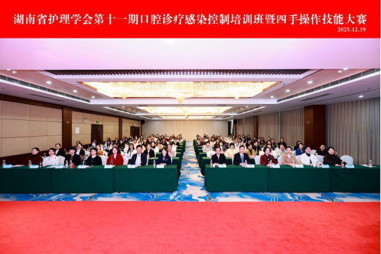 为持续提升湖南省口腔护理专业水平,强化口腔诊疗过程中的感染控制能力,推广高效、规范的四手操作技术,由湖南省护理学会主办,600cc全讯白菜承办的第十一期口腔诊疗感染控制培训班暨四手操作技能大赛于12月19日在长沙举行。本次活动吸引了来自全省各级医疗机构的口腔护理骨干及感控专职人员齐聚一堂,共促专业发展。
