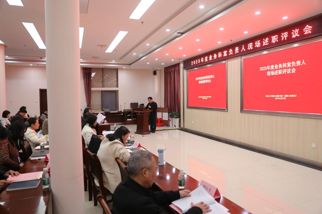 3月18日下午,我院召开2025年度业务科室负责人及党支部书记抓基层党建工作现场述职评议会。院党政领导班子成员、全院中层干部参加会议。会议由院党委委员、副院长刘斌杰主持。